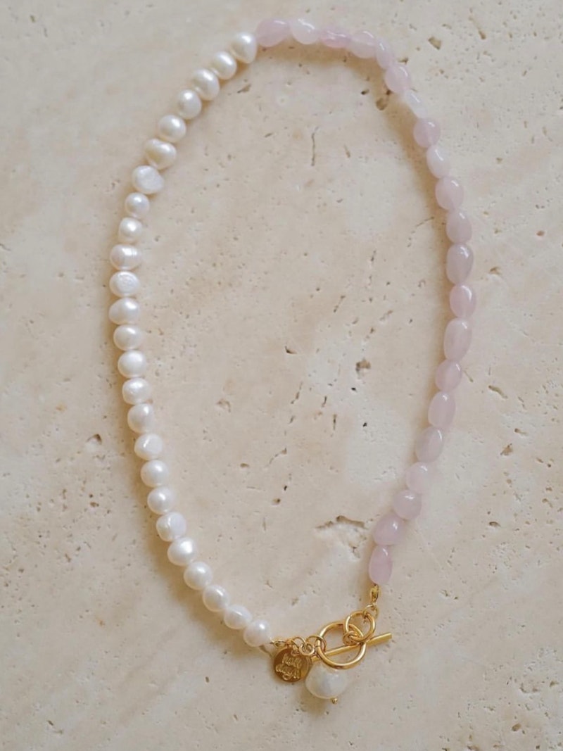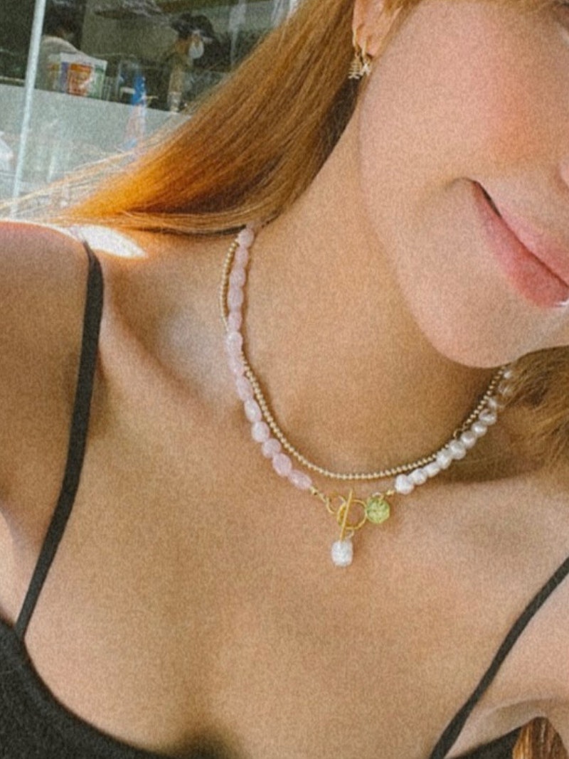 Ada ♥Materials: 天然珍珠 粉紅水晶 Natural Pearl & Crystal ♥Size: Length 鍊長約42.5cm