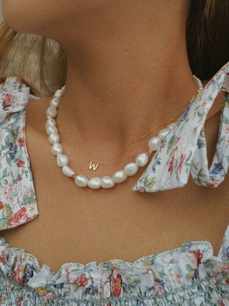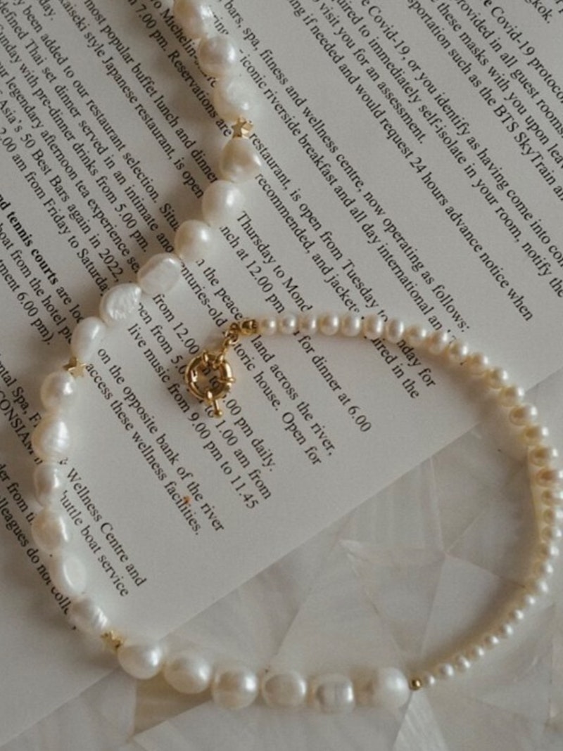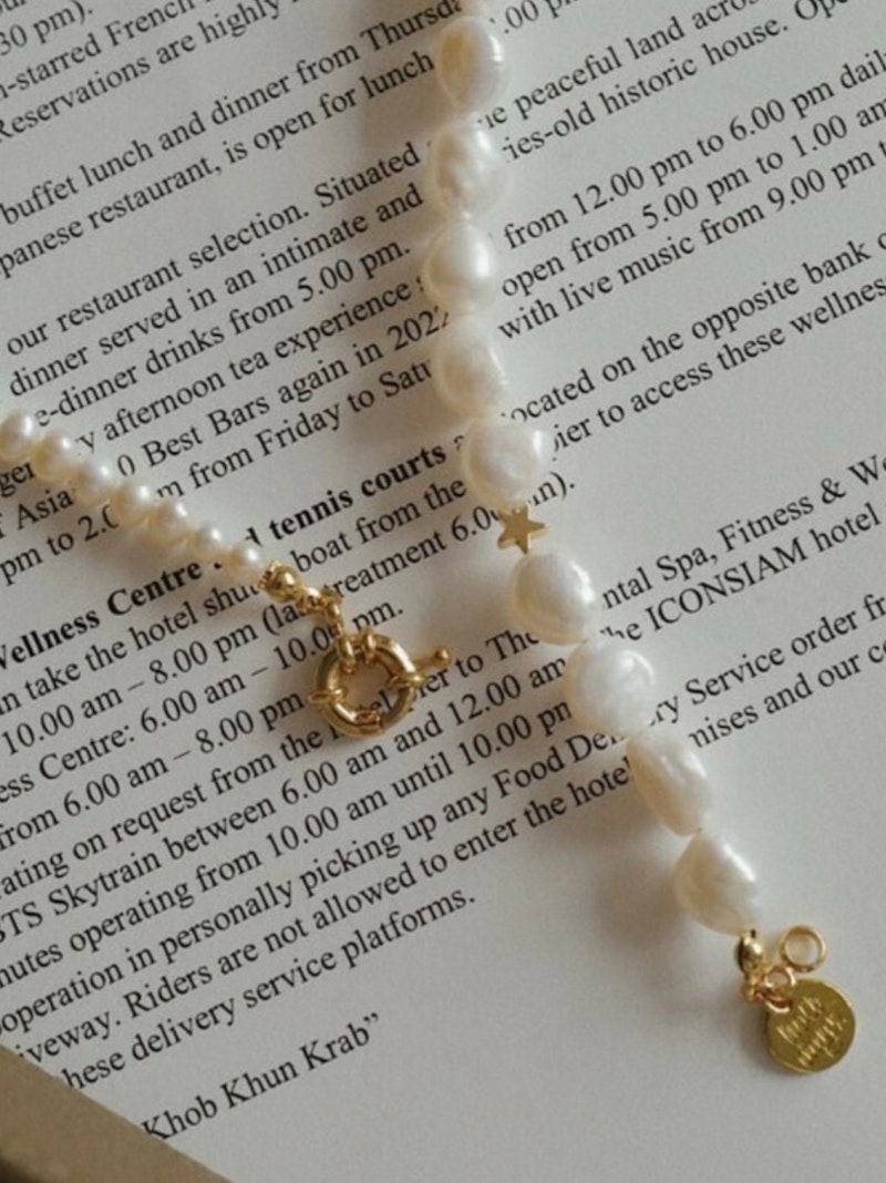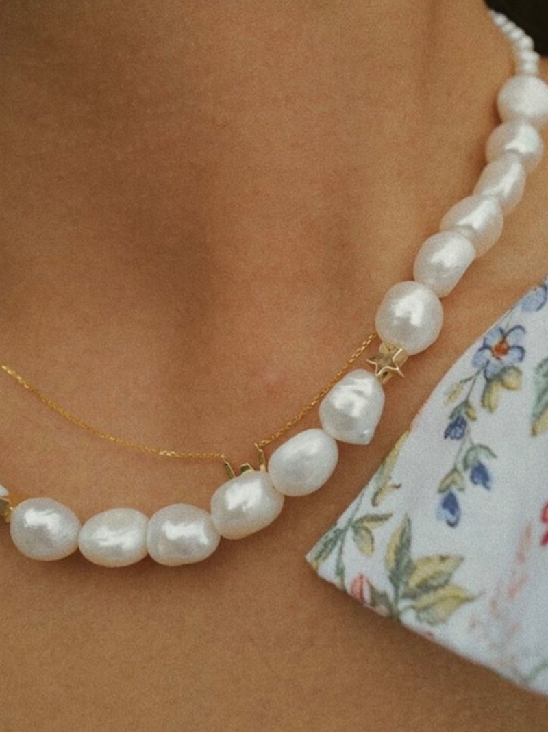 Vicky 自訂款珍珠項鍊 星星點綴很可愛 ♥Materials: Copper with 18k gold plated Freshwater Pearl ♥Size: 42cm