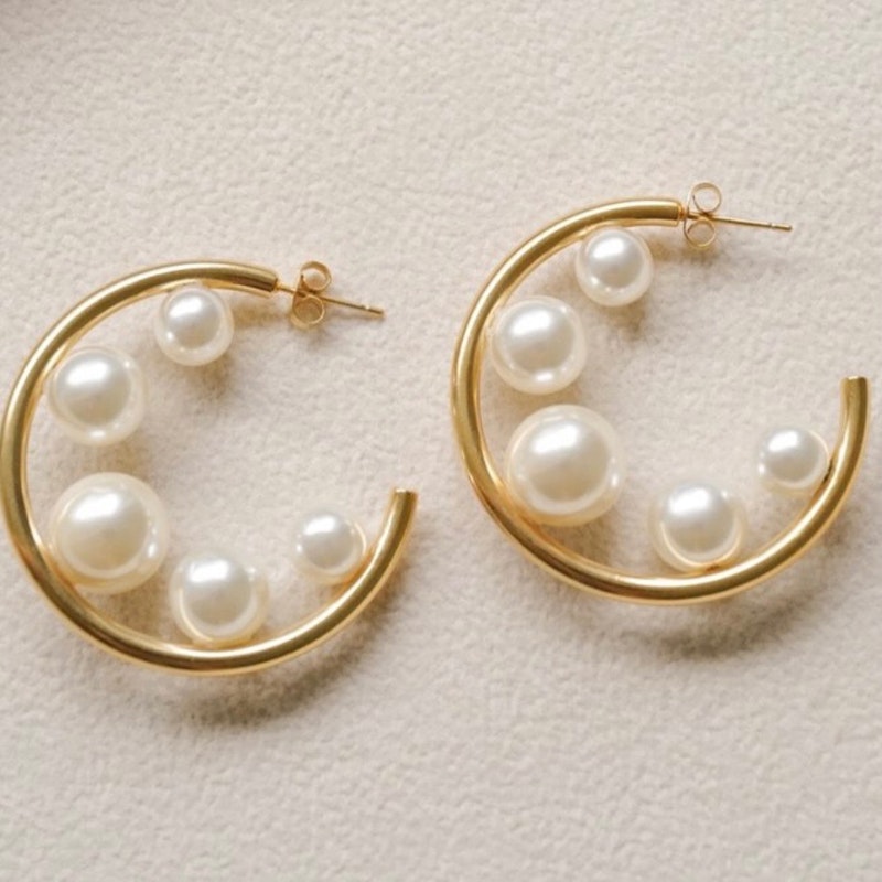 ♥Materials: 18k Gold Plated on Copper Manmade Pearl 銅鍍18k金 人造珍珠。 ♥Size: Diameter 4cm 直徑約4cm