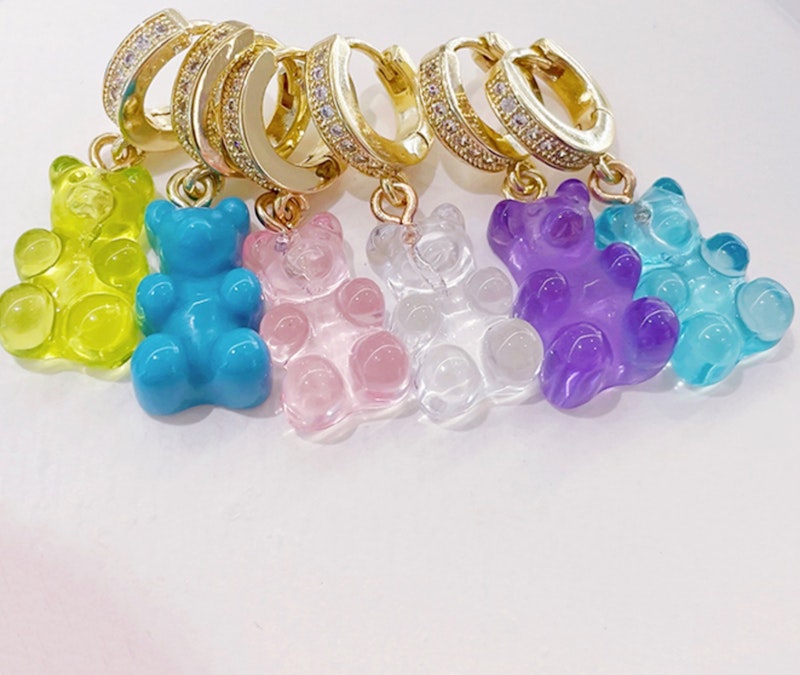 ♥️Size: 1+1.6x1 cm ♥️Material: 18k gold plated, Acrylic, Zircon