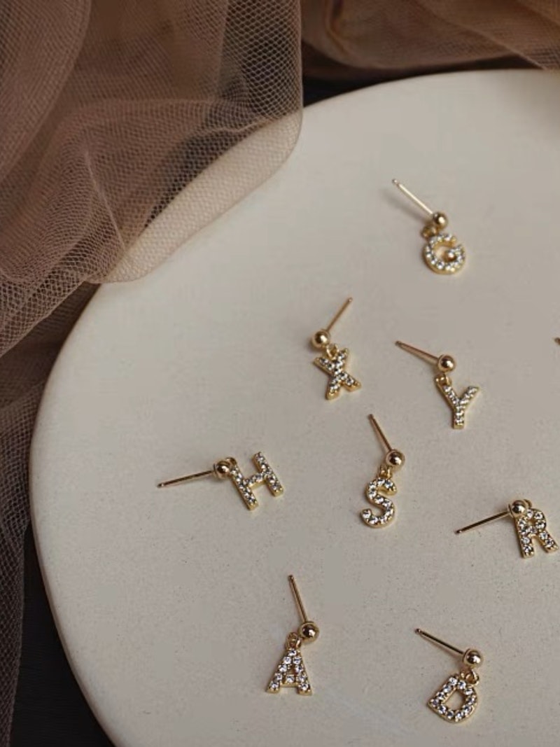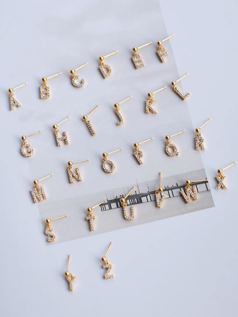 Come in pair, remarks on the alphabet you want ♥️Size: 1.5cm ♥️Material: 14k US gold vermeil